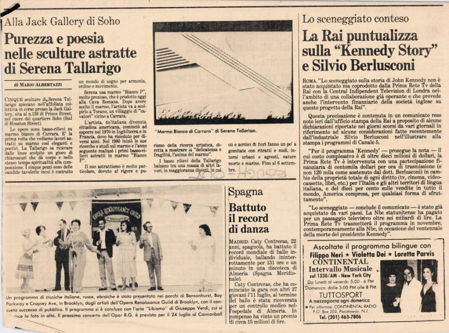 Arte e Spettacolo, “Purezza e Poesia nelle sculture astratte di Serena Talllarigo” di Mario Albertazzi, il Progresso, New York, Usa